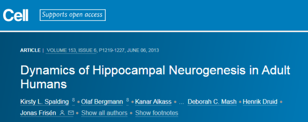 2013年,瑞典卡洛琳丝卡医学院研究团队在Cell发表题为“Dynamics of Hippocampal Neurogenesis in Adult Humans”的研究结果(图2)[3]。研究发现人类成年后,大脑海马体齿状回区域的神经元仍然在不断更新。