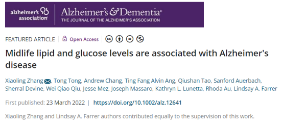 [2]Zhang X, Tong T, Chang A, et al. Midlife lipid and glucose levels are associated with Alzheimer's disease. Alzheimers Dement. 2022 Mar 23. doi: 10.1002/alz.12641. Epub ahead of print. PMID: 35319157.