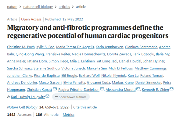 [1]Poch CM, Foo KS, De Angelis MT, et al. Migratory and anti-fibrotic programmes define the regenerative potential of human cardiac progenitors. Nat Cell Biol. 2022 May;24(5):659-671. doi: 10.1038/s41556-022-00899-8. Epub 2022 May 12. PMID: 35550611; PMCID: PMC9106586.