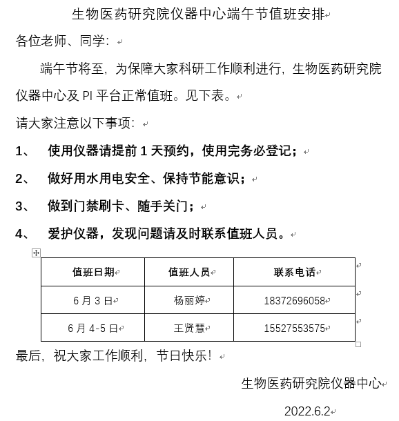 关于2022年英国上市公司365仪器中心及药学平台端午值班安排的通知