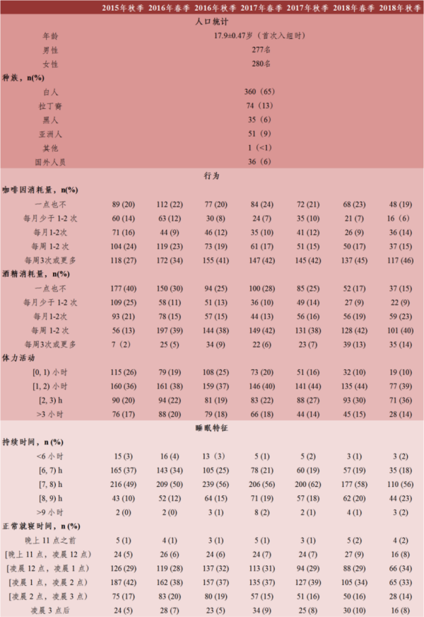 表1 研究期间研究队列人口统计、行为和睡眠特征的概述