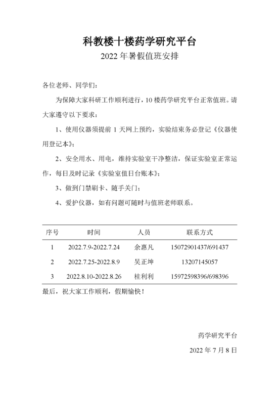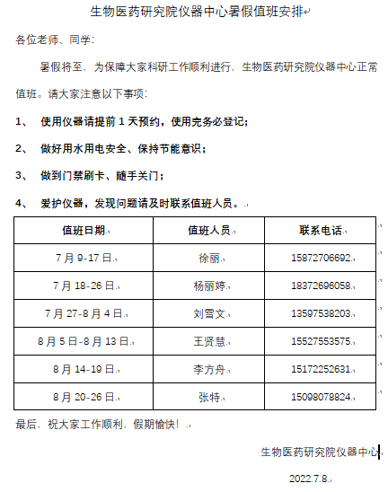 英国上市公司365仪器中心及PI平台2022暑假值班安排