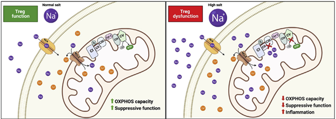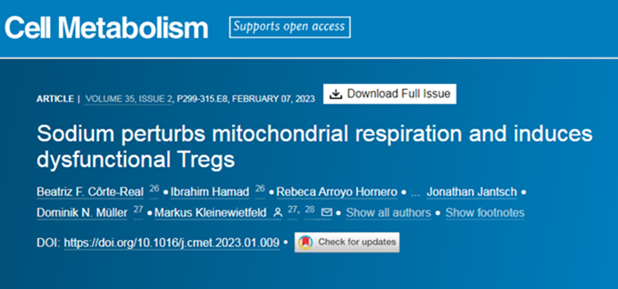 为此,Max Delbrück分子医学中心和实验与临床研究中心的Dominik Müller授团队围绕Treg细胞在高盐环境下展现出的表型变化及背后机制进行了研究,相关结果以“Sodium perturbs mitochondrial respiration and induces dysfunctionalTregs”为题发表于CellMetabolism。