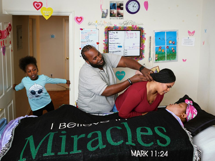 图1 JahiMcMath的家人在家照顾她(图源:The New Yorker)