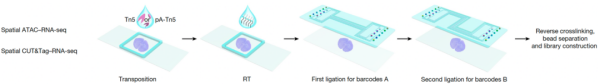 2020年底,耶鲁大学的樊荣教授团队首次报道了利用组织样本原位编码方法同时分析空间转录组和蛋白组(DBiT-seq)。在表观遗传组领域,樊荣教授团队在2022年开发了两种空间表观遗传测序新技术(Spatial-ATAC-seq和Spatial-CUT&Tag),实现了对基因表达机制方面的高空间分辨率分析。2023年2月23日,樊荣教授团队开发的空间转录组和蛋白组新技术Spatial-CITE-seq,实现了高通量(约200–300)蛋白和转录组同时分析。为了进一步研究调控基因表达的表观遗传机制,需要对空间表观组和转录组进行同时分析。因此如果空间分辨的表观遗传组和转录组联合测序分析技术(spatial epigenome–transcriptome co-sequencing)能够实现,将会成为复杂组织生物学研究的一个终极利器, 其用途几乎涉及生物医学的所有重要领域。