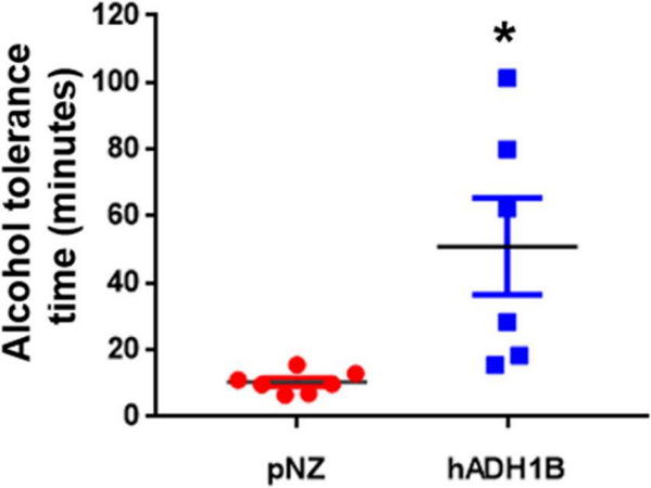 为了研究这种酶的主要功效,研究小组使用分子克隆将人类ADH1B 的基因引入到细菌质粒,对益生菌乳酸乳球菌进行基因改造,生产了一种表达人类 ADH1B 的益生菌,继而使用肠溶胶囊来使其不溶于胃液,保护其不被胃液杀死。