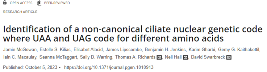在纤毛虫中,只有TGA起到终止密码子的作用。尽管麦高恩博士发现纤毛虫DNA中的TGA密码子比预期的要多,可以补偿其他2个密码子的损失。TAA对应赖氨酸,TAG对应谷氨酸。“这非常不寻常,”麦高恩博士说:“我们并未在其他案例中发现过终止密码子对应2个不同氨基酸的情况。它打破了我们自认为了解的基因翻译的规则——这两个密码子被认为是耦合的。”