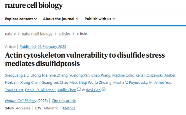 近日,德克萨斯大学MD安德森癌症中心甘波谊教授和陈俊杰教授团队又发现了一种新的细胞死亡机制——Disulfidptosis(双硫死亡),将为新的癌症治疗策略提供思路。该发现以“Actin cytoskeleton vulnerability to disulfide stress mediates disulfidptosis”为题,发表于Nature Cell Biology。