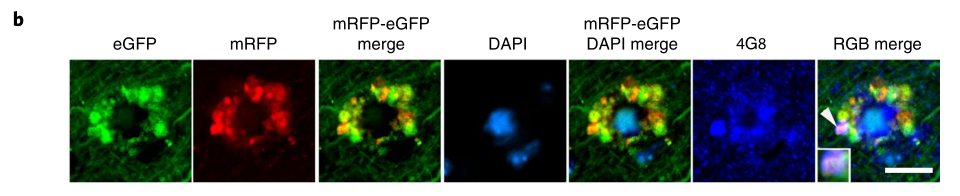 首先他们需要在阿尔兹海默症小鼠中观察到神经细胞的溶酶体出现酸化障碍,并且这一过程是早于细胞死亡以及细胞外淀粉样斑块形成的。