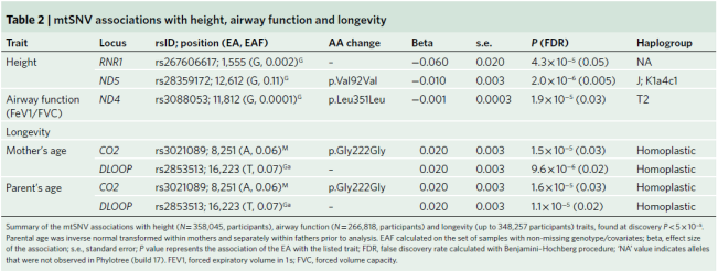 线粒体单核苷酸变异(mtSNV)与身高、气道功能和寿命相关(图片来源:Nature Genetics 2021)