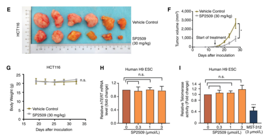 SP2509有着比Fe3+更强的结合能力,能先行抢占并结合到Pirin蛋白上,有效抑制端粒酶的激活,进而减少肿瘤的生长。