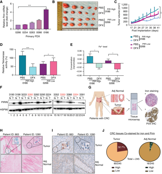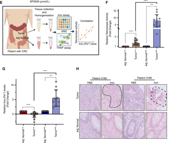 然而,红肉中的铁究竟是如何一步一步地打开“潘多拉魔盒”的呢?为了回答这个问题,研究者利用结直肠癌患者的新鲜样本、患者衍生异种移植物(PDX)以及原发性结直肠癌组织细胞系等,将整个发病机制还原了出来——高水平的Fe3+会直接重新激活野生型人类端粒酶逆转录酶(hTERT)启动子,从而驱动结直肠癌的发生。