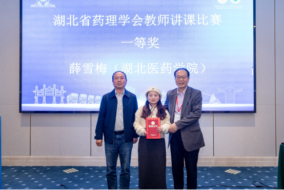 冯奕斌教授(右)和郭鹏教授(左)为湖北省药理学会教师讲课比赛一等奖获得者颁奖