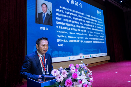 在大会主旨报告阶段,华中科技大学陈建国教授结合自身团队多年工作,介绍《基于氧化还原机制的认知障碍性疾病发生机制及干预药物研究》,希望与武当特色中药研究湖北省重点实验室开展武当道地药材抗神经精神疾病药理作用与产品开发合作。