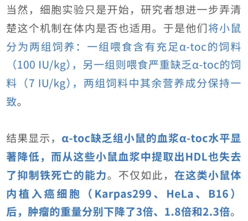 与此同时,这些小鼠的总体健康状况并未受到明显影响,说明α-toc缺乏主要影响的是肿瘤的生长,而非整体机能。