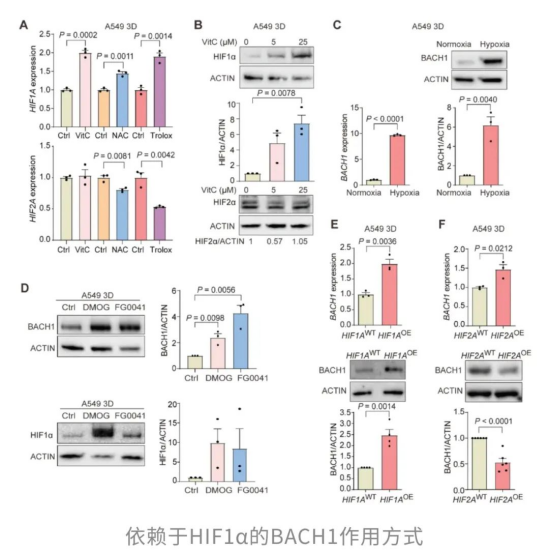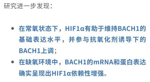 不过,BACH1并不是孤军奋战。既往已有研究提示,在肿瘤缺氧条件下,HIF1α的稳定会驱动血管生成和糖酵解通路的激活,从而有助于肿瘤在恶劣环境中“自我进化”。而且,BACH1本身也是HIF1α的下游转录靶标之一,这就引出了一个关键问题:BACH1到底是HIF1α的“工具人”,还是也能自己“做主”?