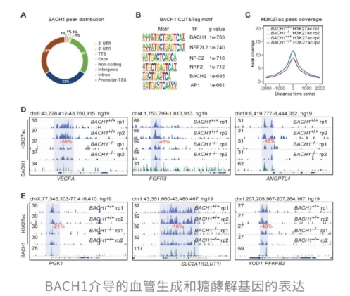 为解答这个问题,研究者进一步在HIF1A敲除细胞中展开实验。结果显示:即使在没有HIF1α的情况下,BACH1依然可以独立上调血管生成相关基因。这表明,BACH1的“执行能力”并不完全依赖于HIF。