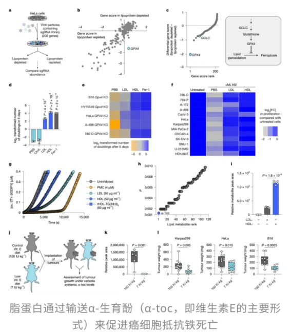 这个号称“铁死亡终结者”的酶,负责清除细胞内的脂质过氧化物,是细胞抵御铁死亡的最后一道防线。而一旦有脂蛋白加入,GPX4的重要性却显著下降。也就是说,在脂蛋白的参与下,癌细胞似乎可以摆脱对GPX4的依赖——这让人不禁好奇:脂蛋白是否隐藏着某种“神秘力量”,能在关键时刻“接管”GPX4的抗铁死亡任务?