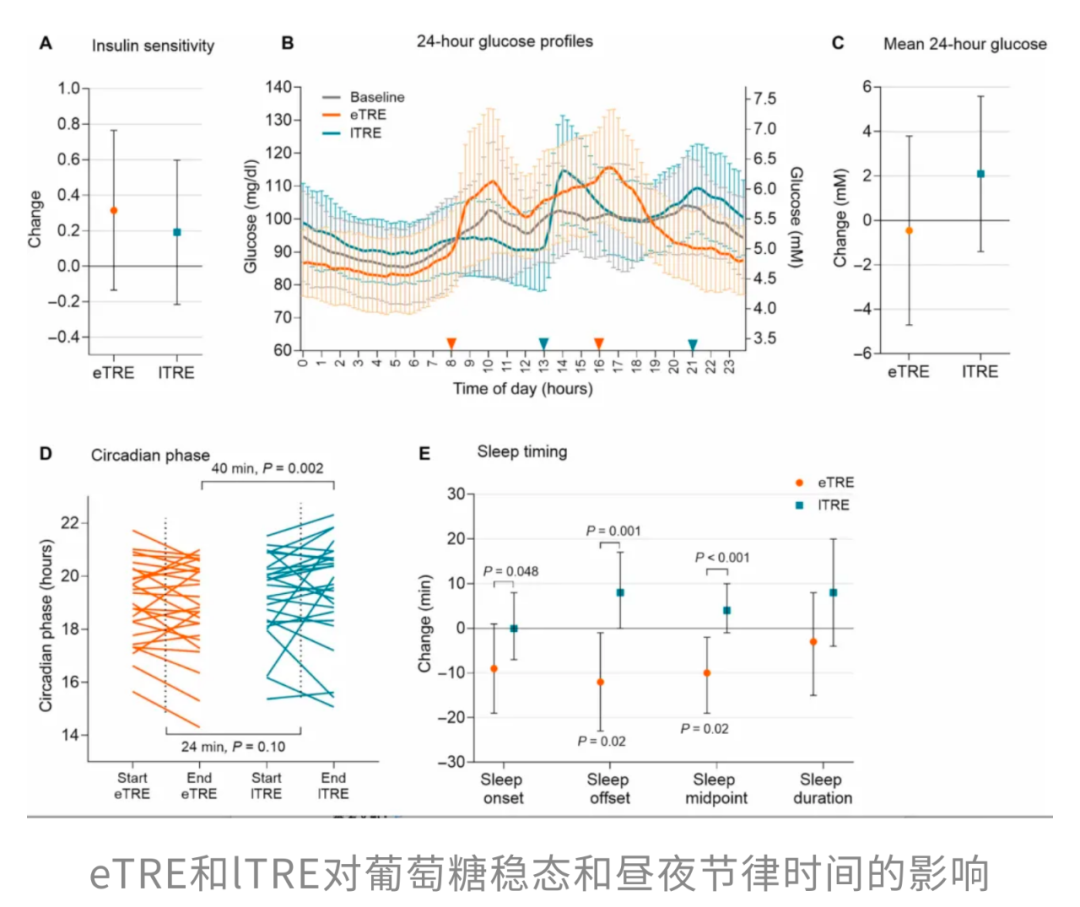 然而,研究中最核心的代谢指标——胰岛素敏感性,在两种限时进食模式下均未显示改善。无论是eTRE还是lTRE组的参与者,胰岛素敏感性的变化都非常有限,组间差异同样不显著。