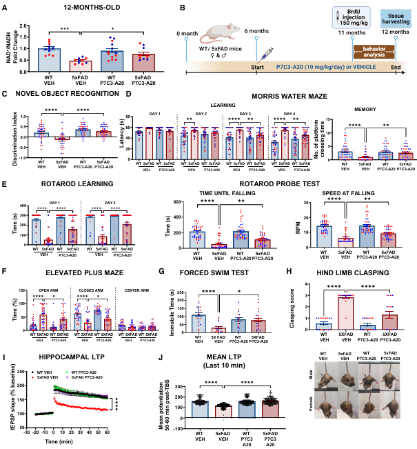 图:P7C3-A20可恢复老年症状性5xFAD小鼠的脑NAD+稳态、认知功能及突触可塑性